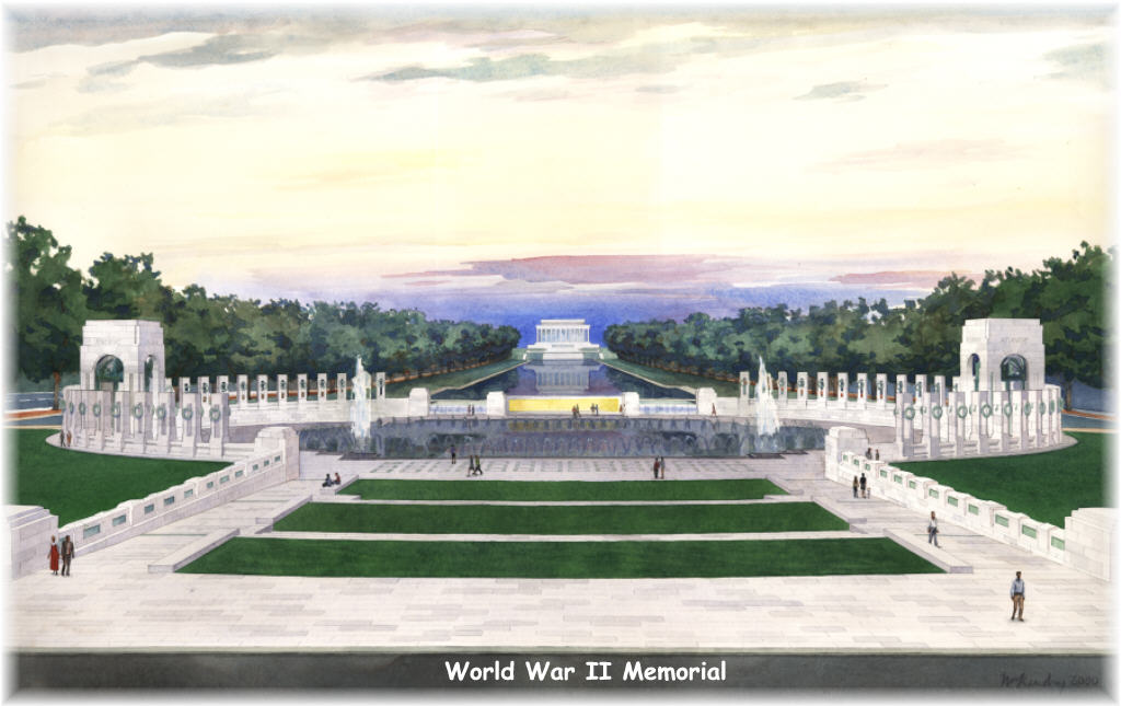 If you get the opportunity, visit the World War II Memorial in Washington DC. The dedication will be Memorial Day, 2004.